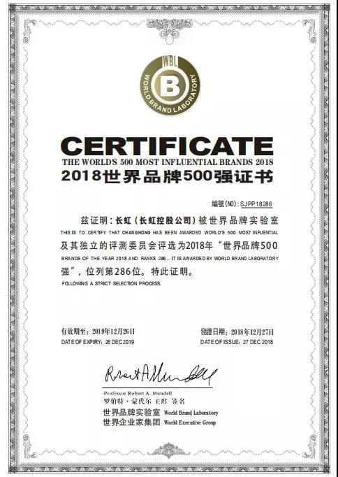 12.27,由世界品牌實(shí)驗(yàn)室編制的“2018世界品牌500強(qiáng)”排行榜在香港正式揭曉,中國(guó)知名信息家電品牌長(zhǎng)虹位居榜單第286位,同時(shí)上榜的中國(guó)品牌共有38個(gè),包括大家熟悉的國(guó)家電網(wǎng)、騰訊、海爾、華為等。