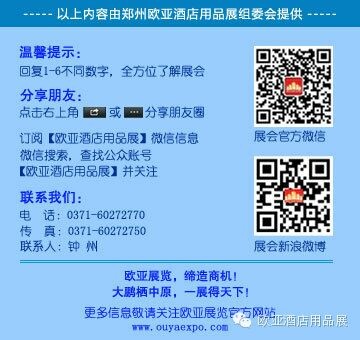 關(guān)于展會的及時動態(tài),請關(guān)注官方微信:歐亞酒店用品展